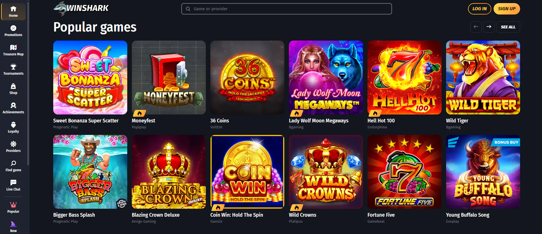 WinShark Casino Games and Providers